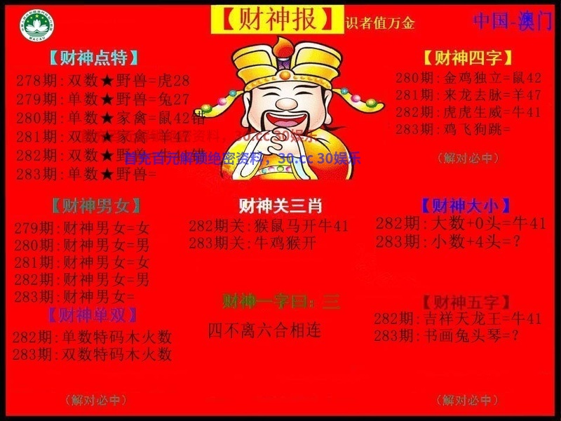 283期 | 羊 | 3尾 | 0头 | 开鸡45 |
