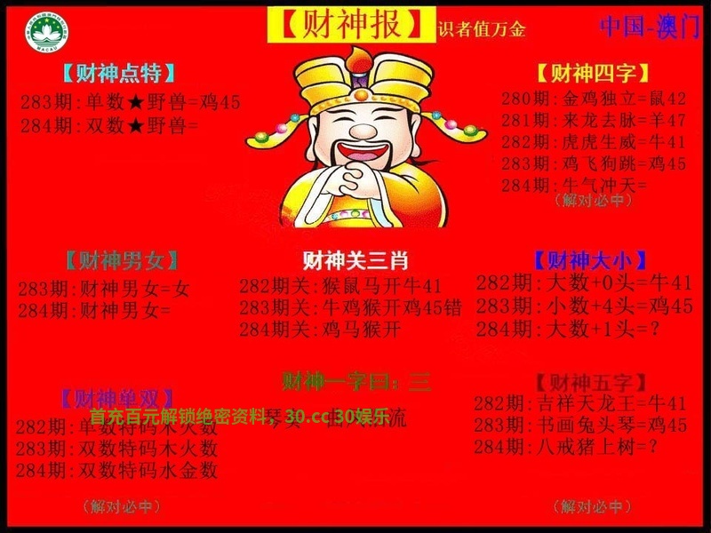 283期:【前后四肖】开:鸡45错 前【虎牛兔蛇】后【猪羊猴马】 |